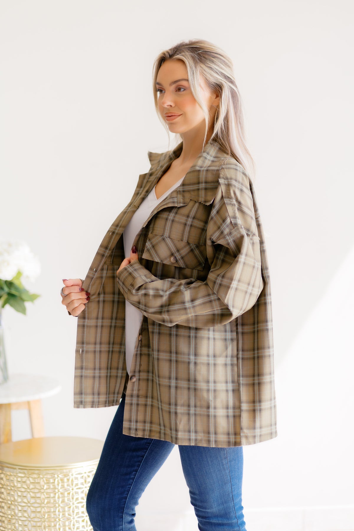 Experience cozy style with the Pumpkin Pathways soft knit button-down shirt. Featuring an oversized fit, long banded sleeves, and a convenient chest pocket, this shirt combines comfort and functionality effortlessly. Perfect for layering or wearing on its own, it adds a relaxed yet polished touch to any outfit. Embrace warmth and versatility with this must-have wardrobe staple.